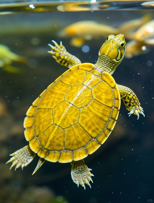 What do you feed these guys? Yellow Pond Turtles are omnivores, meaning they eat both meat and plants, but their diet changes as they get older. Juveniles under 2 years old need way more protein to grow, so their diet should be about 70% protein and 30% veggies. Adults over 2 years old need more plants, so flip that ratio to 70% veggies and 30% protein. A good base for their diet is high-quality commercial aquatic turtle pellets, make sure you get ones made for their age group. For protein, you can give them frozen or live bloodworms, brine shrimp, crickets, small feeder fish, or even cooked plain chicken every once in a while. For veggies, go for things like duckweed, water lettuce, romaine lettuce, chopped zucchini, carrots, or dandelion greens. Don't feed them processed human food, dairy, or bread, they can't digest that stuff at all. And don't overfeed them! Juveniles can eat once a day, but adults only need to be fed 2 to 3 times a week. Even if they give you that cute little begging look every time you walk past the tank, don't give them extra snacks, obesity is super common in pet turtles and causes all kinds of health problems like shell deformities and organ damage. You can dust their food with calcium powder every other feeding to make sure they're getting enough calcium, too.