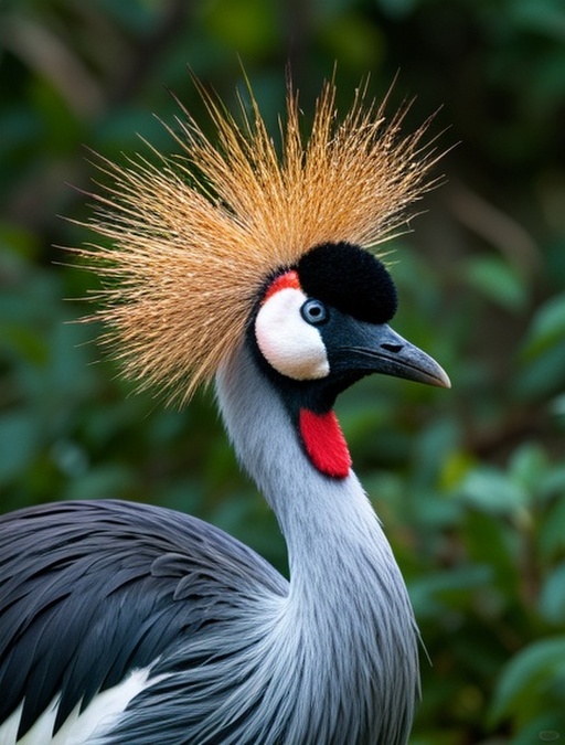 So, first things first – let's talk about that iconic look. Crowned Cranes, also known as Grey Crowned Cranes or sometimes just 'crowned cranes', are famous for their golden feather crests on top of their heads. It's not just a tuft of feathers; it's a proper crown made of stiff, golden strands that kinda looks like a fancy hairpiece. They've got this cool grey body with white wings that have patches of brown and gold, and their faces are mostly white with a bright red throat pouch. Honestly, they look like they're dressed for a bird gala every single day!
